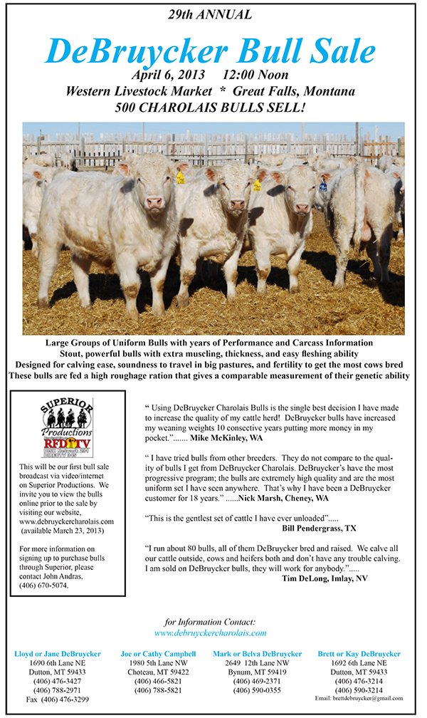 Visit Western Livestock Auction Saturday April 6 for a selection of the highest quality Chraolais bulls for sale for your herd. Or, tune in online with Superior Livestock Auctions. Read here for more details.